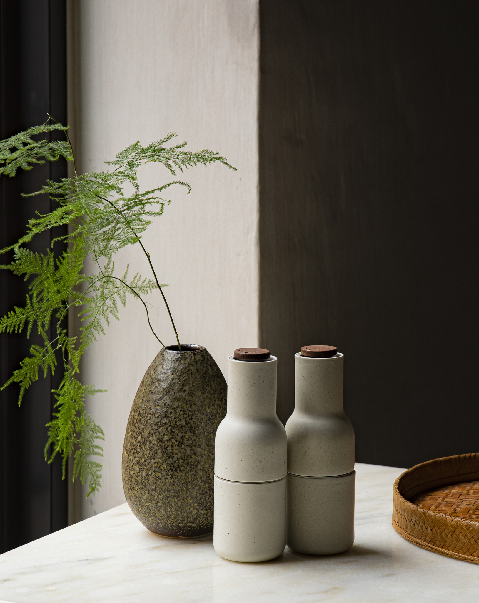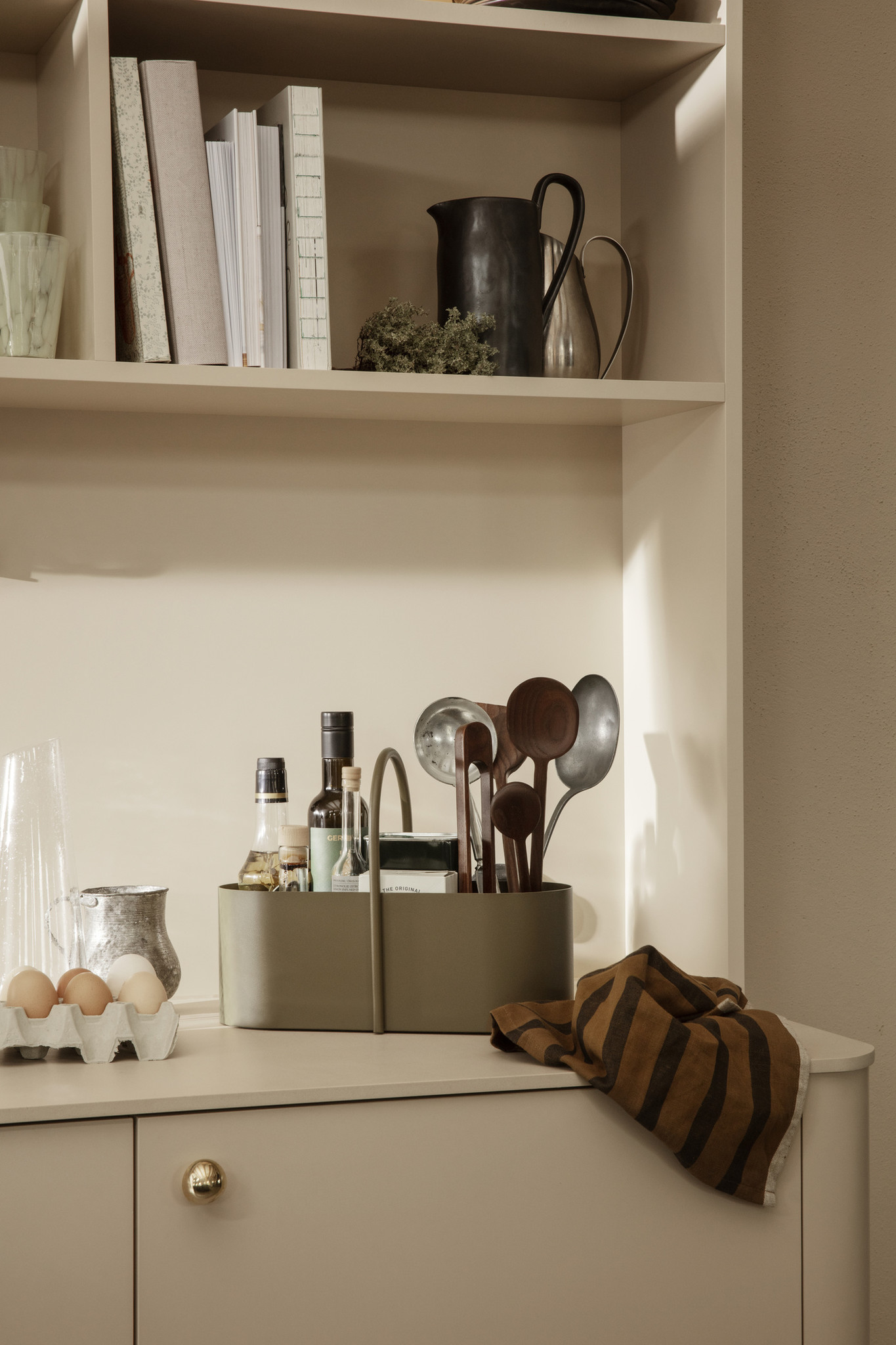 We beginnen gemakkelijk! Het hoeven niet altijd extreme kleuren te zijn om je keuken toch dat tikkeltje meer te geven. De Bottle Grinder setjes van Menu komen in verschillende kleurencombinaties maar zijn steeds neutraal waardoor ze op elke ondergrond passen. Je eten op smaak brengen met peper en zout was nog nooit zo leuk! De Grib Toolbox van Ferm Living bestaat in enkele fijne kleuren en zorgt ervoor dat je je keukenblad makkelijk netjes kan houden.