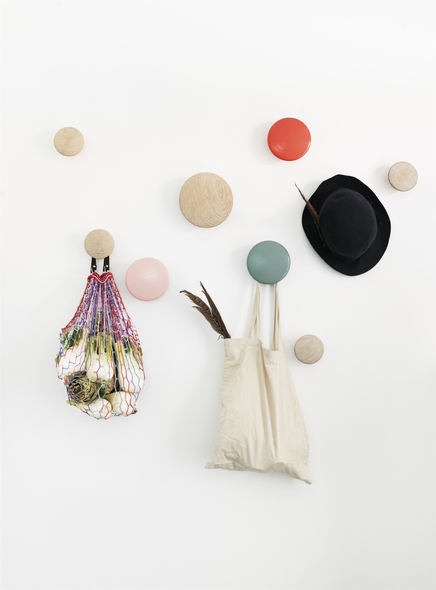 Kleuraccenten in je keuken hoeven niet per se te komen van keukenaccessoires die ook effectief hun nut hebben zoals handdoeken of een peper- & zoutmolen. The Dots van Muuto zijn verkrijgbaar in een heel arsenaal aan kleuren en fleuren een lege muur meteen op. Je kan er je keukenschort of boodschappentas kwijt maar ook op zichzelf zijn ze een visuele aanwinst. Ook met een lamp kan je heel gemakkelijk kleur naar binnen halen. De Flowerpot van &Tradition is een echte klassier en past door zijn vele mogelijkheden overal.