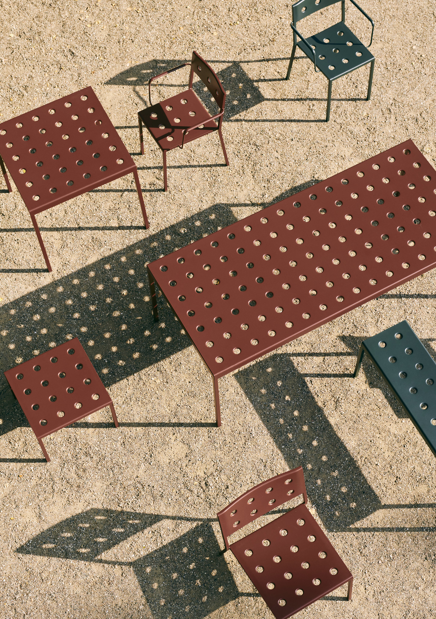 De Franse broers Ronan en Erwan Bouroullec, bekend van de Palissade reeks, creëerden samen met HAY Balcony; een elegante nieuwe collectie tuinmeubelen. De serie omvat stoelen, tafels, banken en ook lounge stoeltjes. Kenmerkend voor Balcony zijn de symmetrische gaten die het strakke, vierkante uitzicht van de meubelen zachter maken en ook voor extra stabiliteit zorgen. De reeks is opgebouwd uit gepoedercoat staal met een weerbestendige coating. Qua kleuren zijn er verschillende opties waardoor je naar hartelust kan combineren! Balcony is eind maart in onze showroom te bezichtigen.