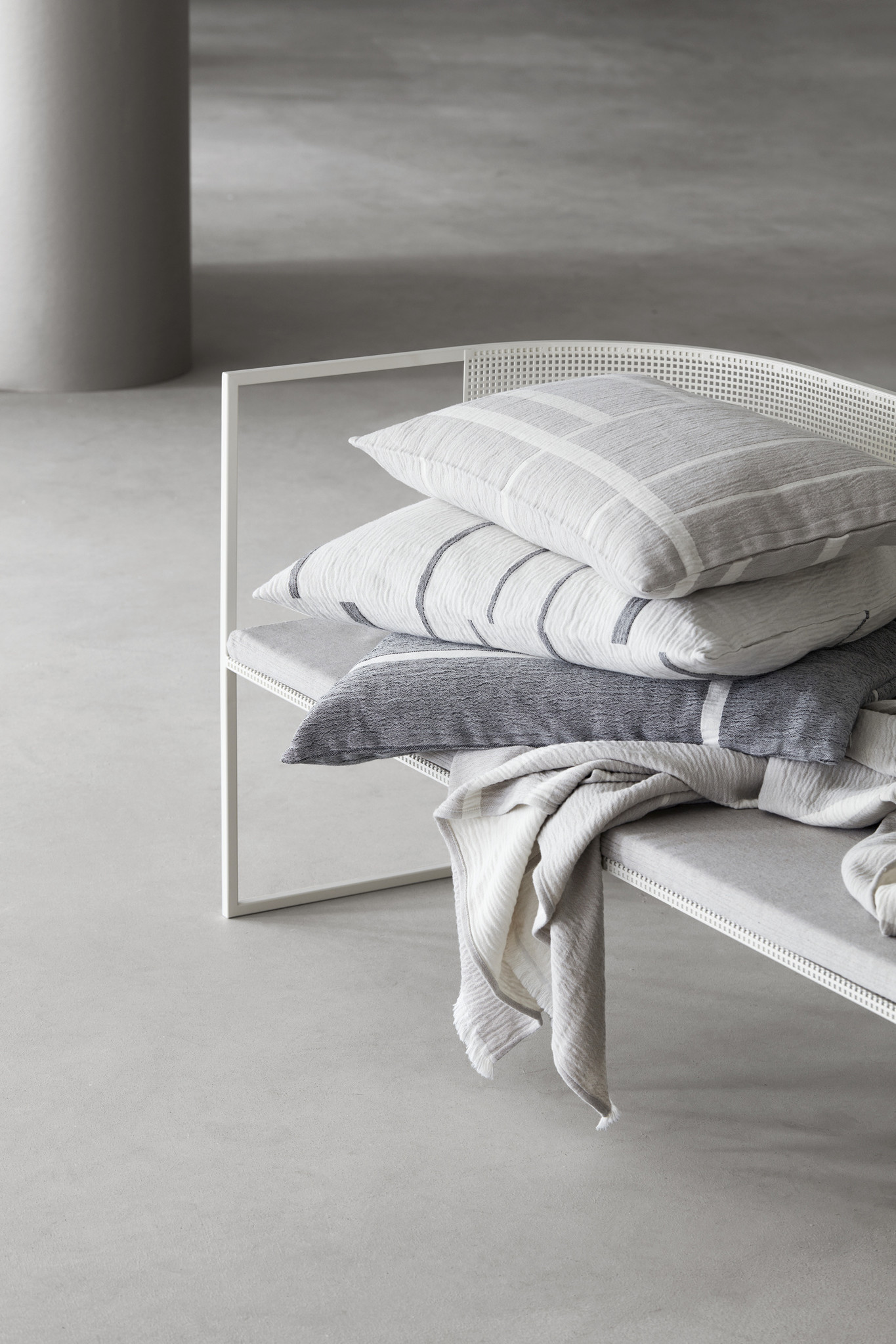 De Lounge Bench is heel mooi te combineren met de Architecture en Contemporary kussens en throws, ook van Kristina Dam. De neutrale kleuren van de patronen geven de bank een uitnodigende, rustgevende uitstraling en net dat tikkeltje extra.