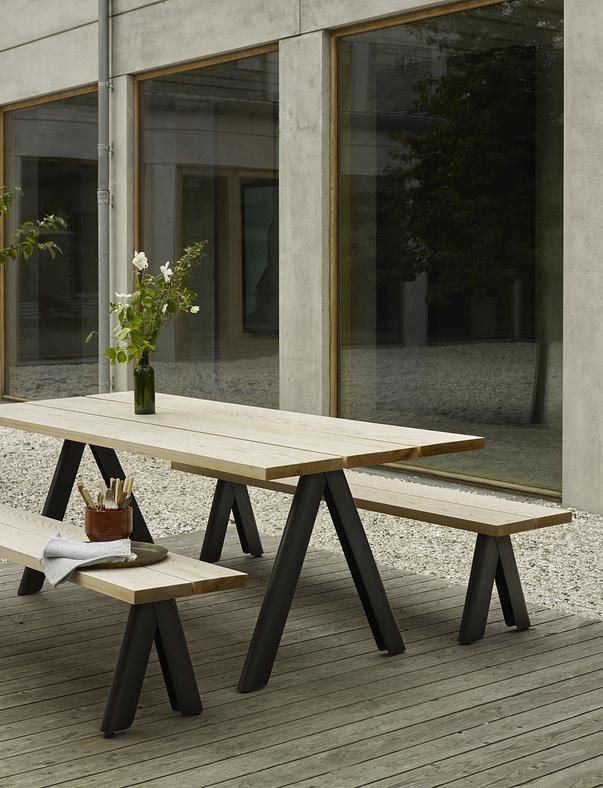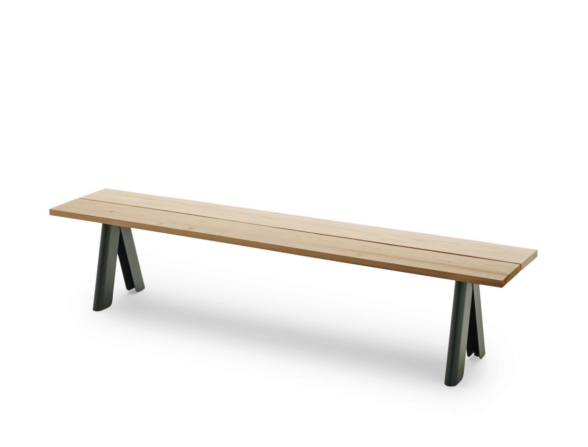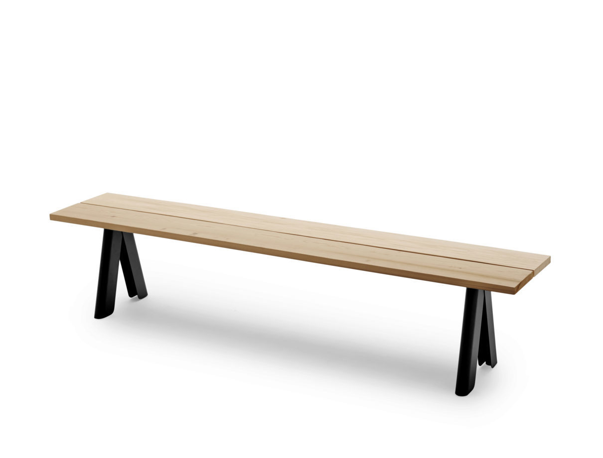 Overlap Bench is een eenvoudige bank van hoge kwaliteit die sterk staat op zijn overlappende stalen poten. Het contrast tussen de rustieke houten planken en het gepoedercoate staal geeft de bank een moderne en eigentijdse uitstraling, waardoor het een voor de hand liggende keuze is, zowel binnen als buiten.