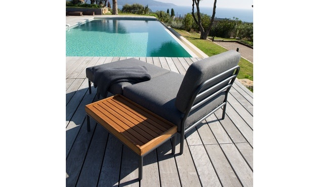 It’s all about level, coming face to face with nature, relating to the horizon and taking lines and shapes to the next level! The lightweight frame and soft cushions provide both contrast and comfort – and entice with a relaxed lounge atmosphere. LEVEL is a lounge series consisting of 2 sofa modules – a left and a right one – a single chair, a pouffe, a coffee table and a side table, making it possible to mix the modules in many different ways.