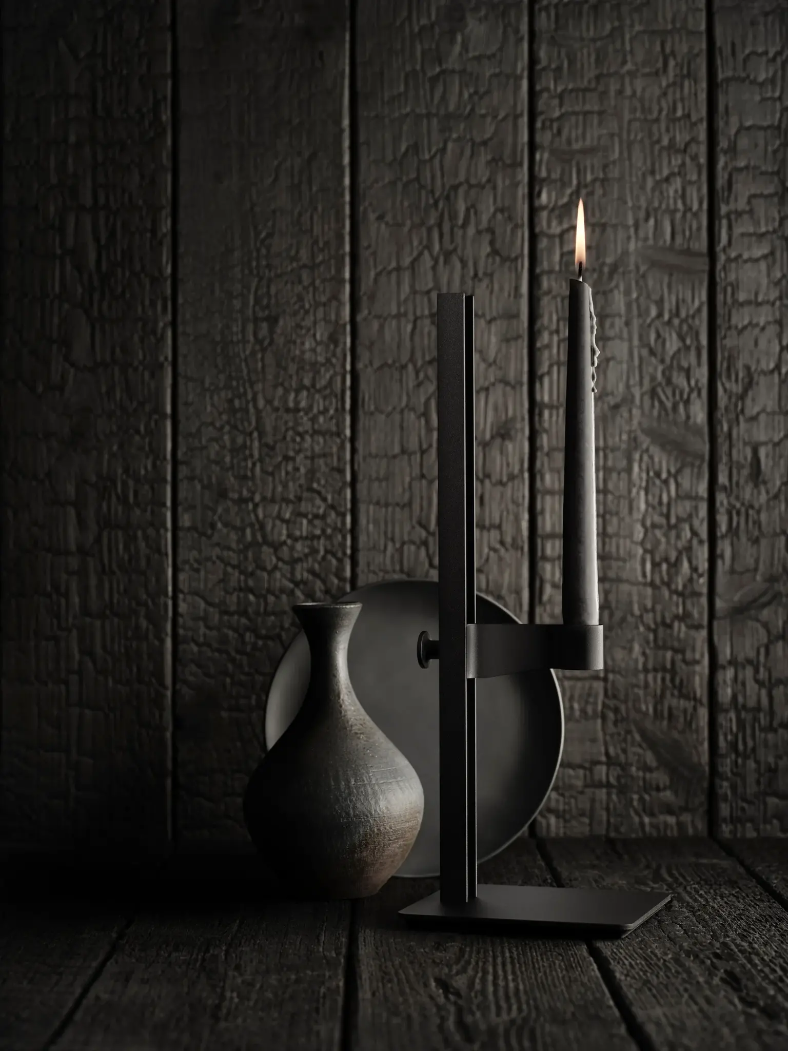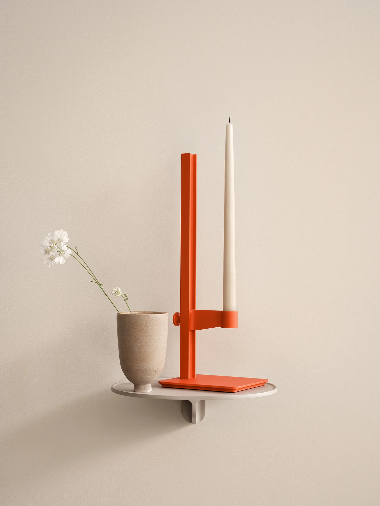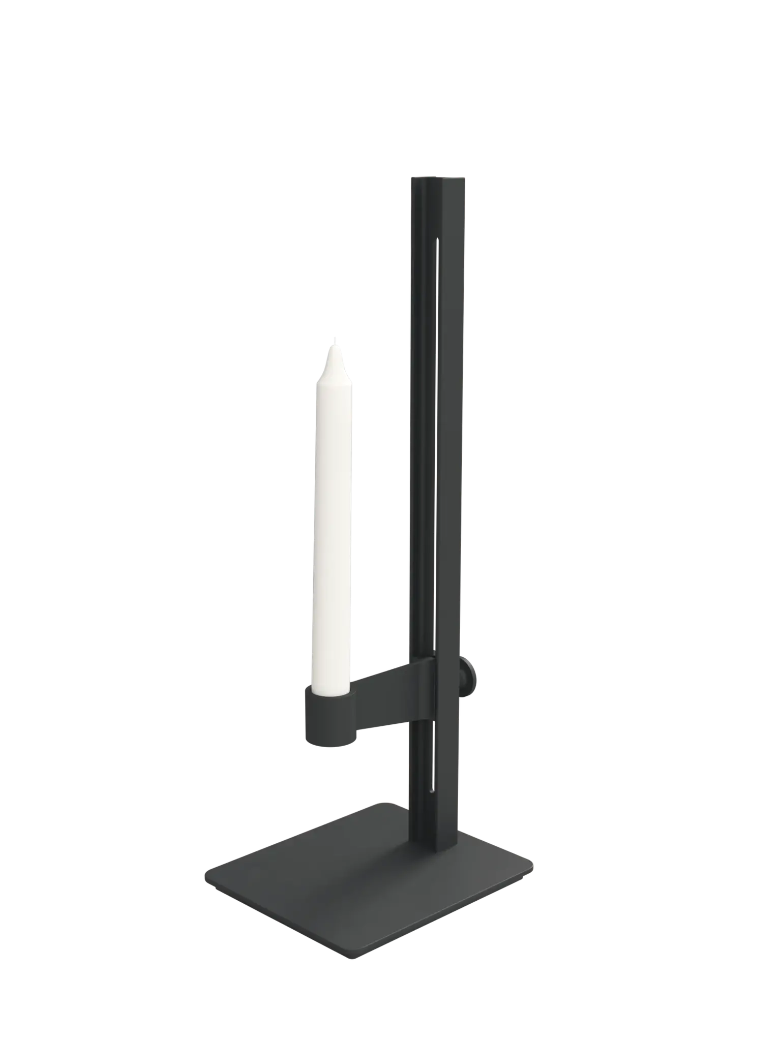 The Museum candlestick is an adjustable aluminum candlestick. Its dimensions are: W13 x D15 x H40 cm, with the highest candle height being 35.5 cm and the lowest 3.5 cm.